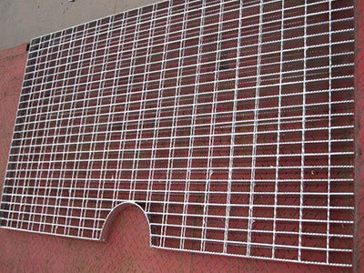 熱鍍鋅鋼格板是由負載扁鋼和橫桿按一定間距經緯排列,在高壓電阻焊機上焊接而成原板,經切割、切口、開孔、包邊等工序深加工而成客戶要求的成品。